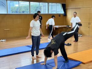 体育の先生から、最初の手を上げるポーズにも腕の筋肉の方向が関係していることや、この先の技に繋げるためのポイントなどを解説してもらって「なーるほど、そういう意味があったのか!」とあらためて奥深さを知りました。