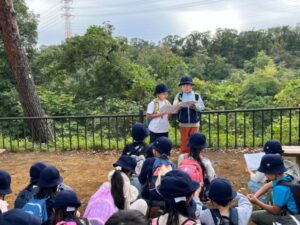 そんな大人の心配をよそに、12グループとも迷子になることなく、集合時刻に間に合うようにゴールにたどり着いたのです。しかも、それぞれ見ようと決めた動物もほぼ見られていたとのこと。困ったことに、グループ活動の途中で雨まで降り始めたにもかかわらず、ちゃんと雨具を身に着けて昆虫ひろばに戻ってきました!中には道に迷いかけたグループや、実はけんかになっちゃった人たちもいたようでした。けれど、なんとか話しあったり声をかけあったりしてゴールしたようでした。たくさんの試行錯誤をしていたことを感じました。『おわりの会』ではたくさんの人が手を挙げて感想を話していました。