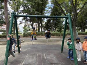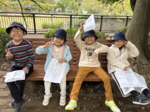 公園についてからは秋探しオリエンテーリング→自由時間→昼食・おやつ→自由時間という流れで子どもたちは過ごしました。