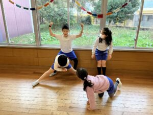 「しゃべらないコミュニケーション」を楽しみがら、表現力・コミュニケーション力をよりつけていけたらと思います。まとめの会はどんな劇になるかな。楽しみにしたいと思います。