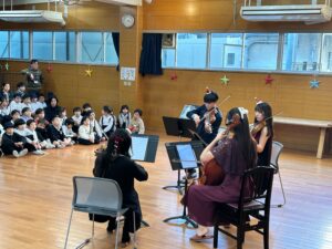 くるみ割り人形から『花のワルツ』や、『アナと雪の女王』のメドレーなど、冬にピッタリの素敵な曲を、ヴァイオリン、ビオラ、チェロ、の音色で味わいました。