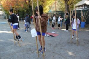 先生たち・・・大繩、短縄、ゴムだん、道にらくがき、竹馬、缶ぽっくり