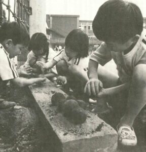 〇幼稚園で楽しかったのは、毎日園庭で遊んだことです。泥団子を作ったり、ドロケイをやったり、ダンゴムシやモグラの死骸を見つけてみんなでお墓を作ったことも。あと、コマ回しができるようになって、上手く回せるようになったのが、とてもうれしかったです。