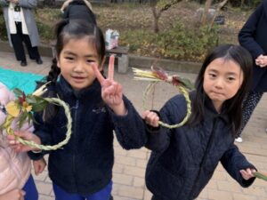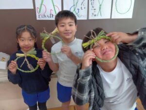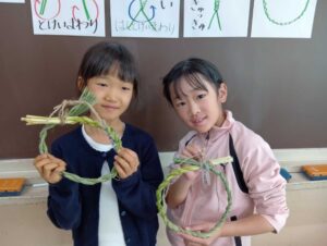 わらとふれあい、自然の恵みで飾りつけた手づくりのしめ縄は、新しい年を迎える準備として、子どもたちにとって心に残るものとなりました。