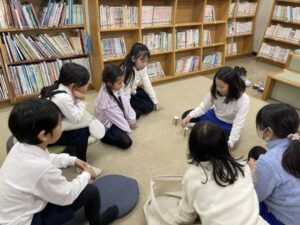 集会では、歌を歌ったり、お祝いの獅子舞を見せてもらったり、みんなで作った「とうほっこかるた2」(60周年の時にもかるたを作ったので、今回は2というわけです)のお披露目をしたり・・・校長先生からは、昔の初等部の写真や遊びの様子の話を聞きました。