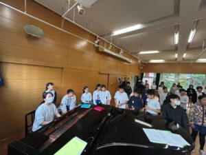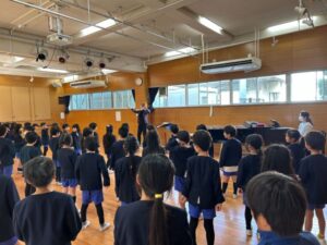 各クラスの音楽の授業で取り組んできましたが、いよいよ学年みんなが集まっての練習が始まりました。