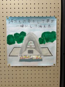 ・平和とは、って一人ひとりに答えがあるから、他にも自分が平和だなと思うことはいっぱいあるんだけど、努力したいなと思っているのは、自分の考えをちゃんと持って周りに流されないように頑張りたい。(中略)これまで戦争について学んできて、それが日常の一部になってきてるから、終わっちゃうのはさみしい。でもちゃんと努力して新しく日常の一部にしていきたい。
